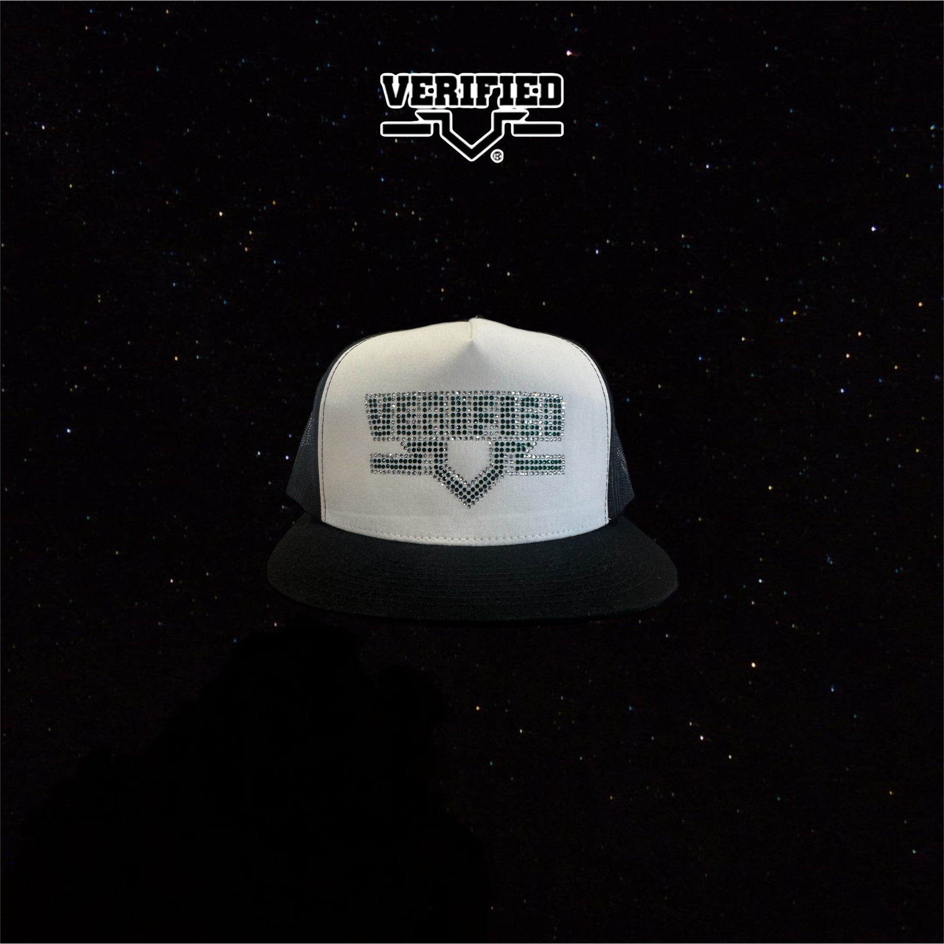 VERIFIED BLACK WHITE AND GREEN RHINESTONE HAT