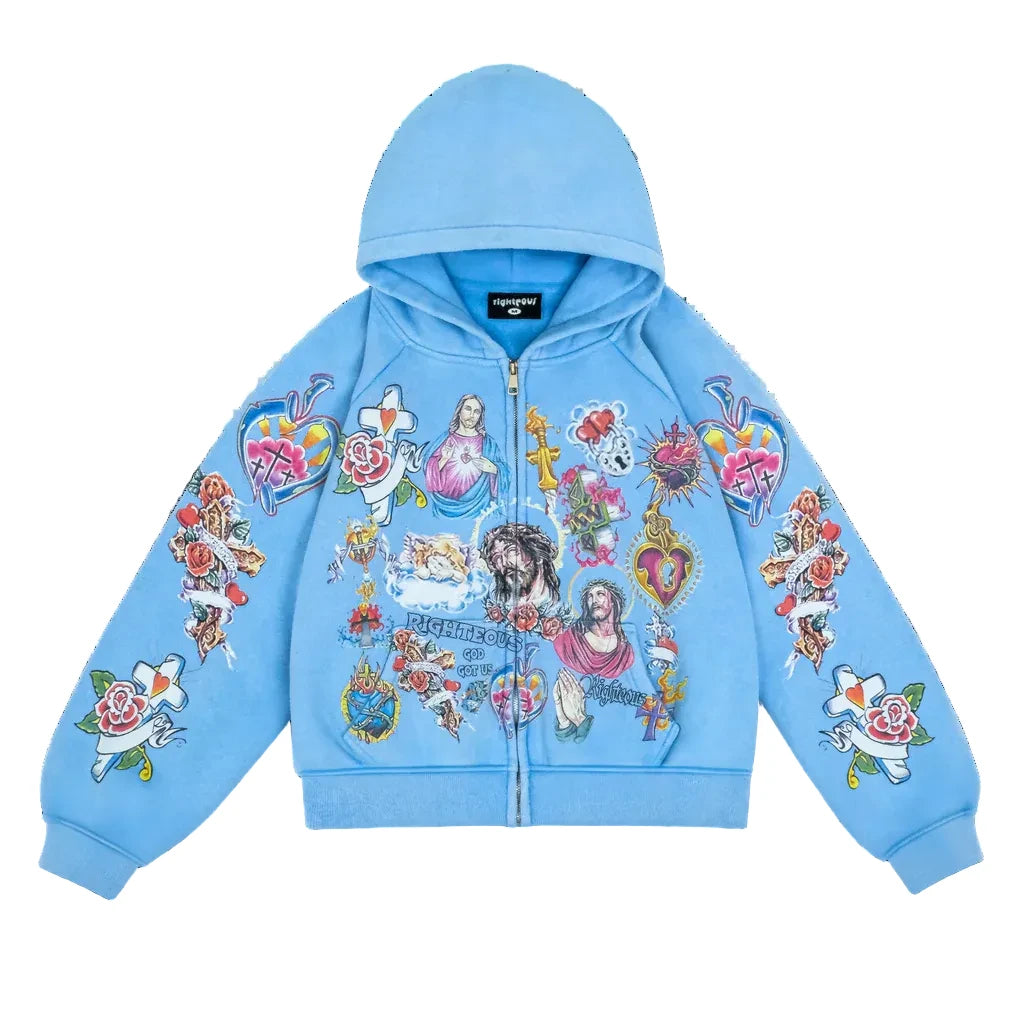 WE ARE RIGHTEOUS Risen King Cropped Zip (Blue)